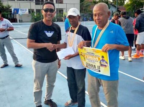 Juara dan semangat para pemain senior kelompok 130 luar biasa minimal usia 65 tahun perjuangan untuk menuju Fornas di Bandung nantinya.