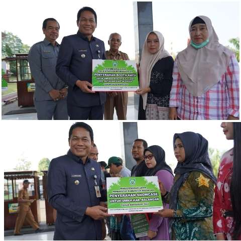 wartaberitaindonesia.com– Bupati Balangan, Provinsi Kalimantan Selatan, H Abdul Hadi menyerahkan Bantuan Showcase dan Booth Kayu kepada pelaku Usaha Mikro Kecil dan Menengah (UMKM), di halaman kantor bupati setempat, Senin (28/8/2023).