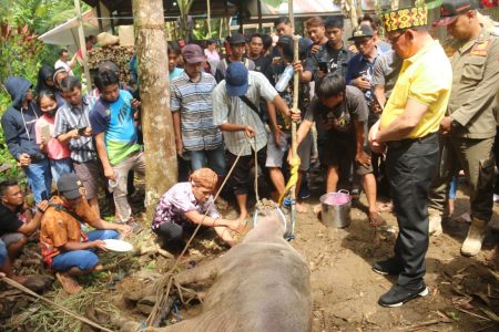 Untuk diketahui bersama bahwa acara puncak pemotongan hewan kerbau ini bertempat di Halaman Balai Adat Desa Bangkalan, Kecamatan Kelumpang Hulu dan dikesempatan itu juga Bupati memberikan bantuan uang sebesar Rp20 juta yang diterima langsung oleh Ketua Adat Dayak setempat.
