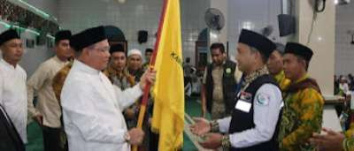 Sementara itu, dilakukan penyerahan bendera saijaan kepada Tim Pembimbing ibadah haji indonesia (TPIHI) Dr.H.Ahmad Kamal,M.Ag sebagai tanda melepas secara resmi jamaah calon haji kloter 13 Kabupaten Kotabaru.