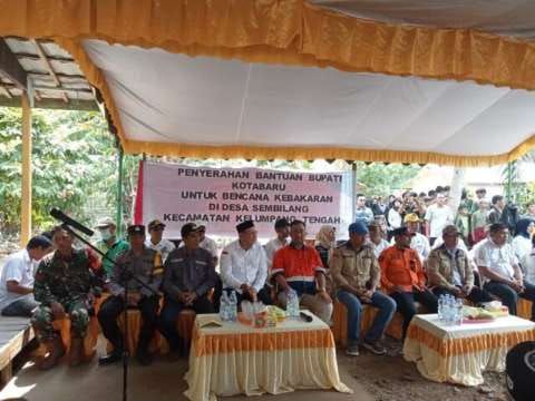 Bantuan-bantuan yang diserahkan seperti halnya adalah, Dari Dinas Sosial Kotabaru berupa 6 paket kasur, 6 paket selimut merah, 6 paket sandang dewasa dan 6 paket family kit. Dari BPBD Kotabaru sebanyak 6 paket bahan sembako, dari Dinas Perumahan Rakyat, Pemukiman dan Pertanahan Kotabaru berupa bantuan pembangunan baru rumah korban bencana kebakaran sebanyak 6 buah rumah dengan nilai masing-masing Rp25 juta, dan bantuan secara simbolis untuk rehab rumah tidak layak huni untuk Desa Sembilang sebanyak 6 buah rumah masing-masing Rp20 juta dan Desa Tanah Rata 2 buah rumah.