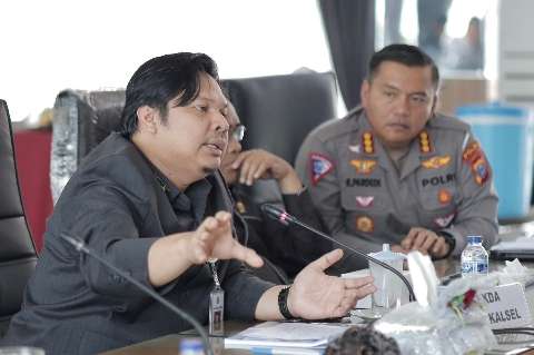 Robertho di sela hasil monitoring bersama Dewan Perwakilan Rakyat Daerah (DPRD) Kalsel dan seluruh stakeholder beserta Kasatlantas 13 Kabupaten/Kota guna percepatan penambahan perangkat ETLE di Aula H. M. Ismail Abdullah, Gedung B DPRD Provinsi Kalsel, Rabu (26/7).