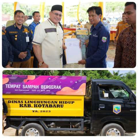 Pada kesempatan itu juga diserahkan 2 buah kendaraan sampah roda tiga untuk membantu penanganan sampah di perumahan dan obyek wisata pantai Teluk Tamiyang dan Desa Labuan Mas, dan 2 buah mobil dump truck untuk Peremajaan angkutan sampah ke TPA Sungup. (fauji)