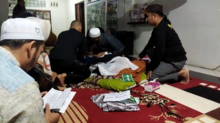 Sejumlah pelayat membacakan surat Yasin untuk almarhum H. Eddy Yulianto, Sabtu (24/12) sore. (ist)