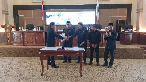 Sidang paripurna yang dipimpin oleh Ketua DPRD Balangan Ahsani Fauzan didampingi Wakil Ketua 1 DPRD Muhammad Ifdali dan Wakil Ketua 2 DPRD Hanil Tamjid berlangsung di ruang sidang utama Sekretariat DPRD Balangan, Senin (17/7/2023).