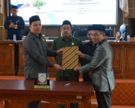Rapat Paripurna dipimpin oleh Ketua DPRD Kabupaten Balangan, Ahsani Fauzan didampingi Wakil Ketua DPRD, M Ifdali dan Hanil Tamjid serta dihadiri 15 anggota DPRD lainnya.