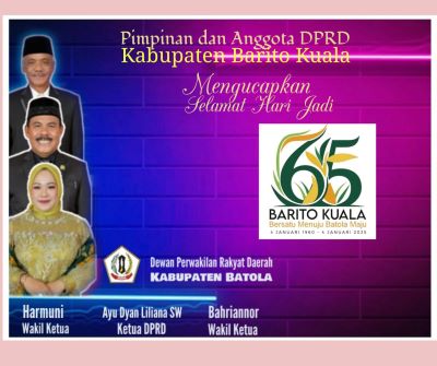 DPRD Barito Kuala admin29 Januari 202529 Januari 2025 Ucapan Pimpinan Dan Anggota DPRD Barito Kuala Selamat Hari Jadi DPRD Barito Kuala 65 tahun Pos terkaitKetua DPRD HSS Tinjau Pelayanan IGD dan Farmasi RSUD Brigjend Hasan BasryAdrizal Nilai Pembangunan Banjarbaru Semakin Nyata Setahun TerakhirBatola Siap Jadi Tuan Rumah MTQ Nasional XXXVII Tingkat Provinsi Kalsel 2026 Empat Desa di Batola Raih Penghargaan Desa Peduli Stunting 2026Pemkab Batola Gelar Rakor Percepatan Imunisasi, Tekankan Kolaborasi dan InovasiHUT ke-23 Balangan, Sri Huriyati Hadi Ajak Masyarakat Perkuat Kebersamaan Bangun Daerah