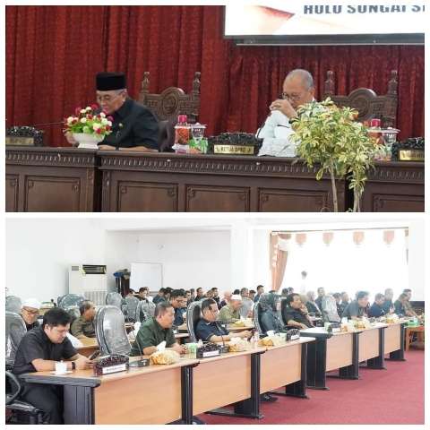 Rapat paripurna dipimpin Wakil Ketua DPRD Kabupaten HSS Muhammad Kusasi yang dihadiri langsung oleh Bupati Achmad Fikry dan segenap anggota dewan dan Kepala OPD.