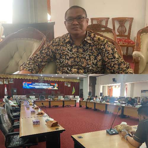 Teks foto: Wakil Ketua I DPRD Kabupaten HSS Kartoyo (atas) dan DPRD HSS saat rapat pembahasan usulan Raperda RPJPD 2025-2045 . (Sofan)