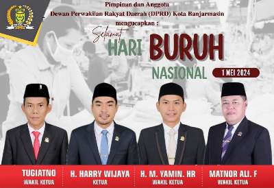 DPRD Kota Banjarmasin mengucapkan Selamat Hari Buruh Nasional admin30 April 2024 Pimpinan dan Anggota DPRD Kota Banjarmasin mengucapkanBacaan LainnyaBantah Tuduhan Perzinahan, Istri di Banjarmasin Sebut Penggerebekan di Hotel Terkait Urusan BisnisHabib Umar Ajak Masyarakat Tanamkan Kesadaran Berpolitik yang HalalBanjarmasin Ajukan Perluasan Wilayah ke Pemprov Kalsel Selamat Hari Buruh Nasional 1 Mei 2024 Pos terkaitKetua DPRD HSS Tinjau Pelayanan IGD dan Farmasi RSUD Brigjend Hasan BasryAdrizal Nilai Pembangunan Banjarbaru Semakin Nyata Setahun TerakhirBatola Siap Jadi Tuan Rumah MTQ Nasional XXXVII Tingkat Provinsi Kalsel 2026 Empat Desa di Batola Raih Penghargaan Desa Peduli Stunting 2026Pemkab Batola Gelar Rakor Percepatan Imunisasi, Tekankan Kolaborasi dan InovasiHUT ke-23 Balangan, Sri Huriyati Hadi Ajak Masyarakat Perkuat Kebersamaan Bangun Daerah