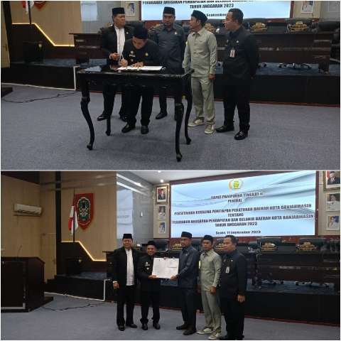 Banjarmasin, wartaberitaindonesia.com – DPRD Kota Banjarmasin bersama Pemerintah Kota (Pemko) setempat, akhirnya menetapkan Rancangan Anggaran Pengeluaran dan Belanja Daerah (APBD) Perubahan tahun 2023 menjadi Perda, Senin (11/9) pada rapat Paripurna, di ruang utama gedung dewan.