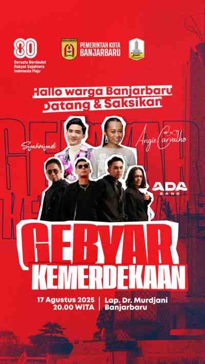 Gebyar Kemerdekan HUT ke-80 RI di Banjarbaru Hadirkan Ada Band, Syahriyadi dan Angie Carvalho