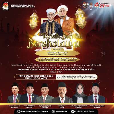 “Jadi kawan-kawan mari kita seluruh masyarakat Tanah Bumbu hadir untuk nantinya bersholawat pada Minggu 20 Oktober 2024 dimulai pukul 19.30 Wita,” kata Yayan.