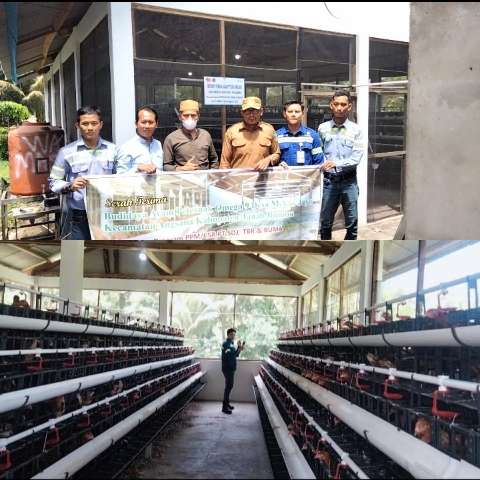 Penyerahan program CSR PT SDJ-TBR dan PT Buma di Desa Mekar Jaya berupa dua unit bangunan kandang ayam petelur Omega 9. (foto: istimewa)
