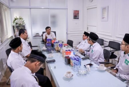 PWNU Kalsel bertemu Direktur Intelkam Polda Kalsel Kombes Pol Sentot Adi Dharmawan sebelum keberangkatan kontingen Porseni NU Kalsel ke Solo. (ist)