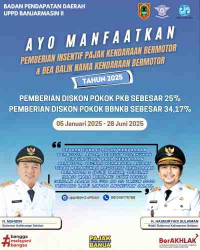Iklan Pemberian Diskon Pokok PKB admin11 April 2025 Iklan Pemberian Diskon Pokok PKB Pos terkaitKetua DPRD HSS Tinjau Pelayanan IGD dan Farmasi RSUD Brigjend Hasan BasryAdrizal Nilai Pembangunan Banjarbaru Semakin Nyata Setahun TerakhirBatola Siap Jadi Tuan Rumah MTQ Nasional XXXVII Tingkat Provinsi Kalsel 2026 Empat Desa di Batola Raih Penghargaan Desa Peduli Stunting 2026Pemkab Batola Gelar Rakor Percepatan Imunisasi, Tekankan Kolaborasi dan InovasiHUT ke-23 Balangan, Sri Huriyati Hadi Ajak Masyarakat Perkuat Kebersamaan Bangun Daerah