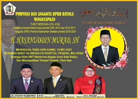 Iklan Ucapan Dukacita DPRD BATOLA admin20 Mei 2023 Iklan Ucapan Dukacita DPRD BATOLA Pos terkaitKetua DPRD HSS Tinjau Pelayanan IGD dan Farmasi RSUD Brigjend Hasan BasryAdrizal Nilai Pembangunan Banjarbaru Semakin Nyata Setahun TerakhirBatola Siap Jadi Tuan Rumah MTQ Nasional XXXVII Tingkat Provinsi Kalsel 2026 Empat Desa di Batola Raih Penghargaan Desa Peduli Stunting 2026Pemkab Batola Gelar Rakor Percepatan Imunisasi, Tekankan Kolaborasi dan InovasiHUT ke-23 Balangan, Sri Huriyati Hadi Ajak Masyarakat Perkuat Kebersamaan Bangun Daerah