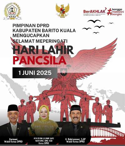 Iklan Ucapan Hari Lahir Pancasila admin3 Juni 2025 Iklan Ucapan Hari Lahir Pancasila Pos terkaitKetua DPRD HSS Tinjau Pelayanan IGD dan Farmasi RSUD Brigjend Hasan BasryAdrizal Nilai Pembangunan Banjarbaru Semakin Nyata Setahun TerakhirBatola Siap Jadi Tuan Rumah MTQ Nasional XXXVII Tingkat Provinsi Kalsel 2026 Empat Desa di Batola Raih Penghargaan Desa Peduli Stunting 2026Pemkab Batola Gelar Rakor Percepatan Imunisasi, Tekankan Kolaborasi dan InovasiHUT ke-23 Balangan, Sri Huriyati Hadi Ajak Masyarakat Perkuat Kebersamaan Bangun Daerah