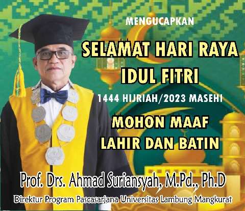 Prof. Drs. Ahmad Suriansyah direktur pasca sarjana ULM banjarmasin mengucapkan selamat hari raya idul fotri 1444 hijriah / 2023 masehi