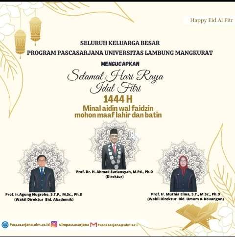 SELURUH KELUARGA BESAR PROGRAM PASCASARJANA UNIVERSITAS LAMBUNG MANGKURAT MEMGUCAPKAN SELAMAT HARI RAYA IDUL FITRI 1444 HIJRIAH