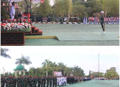Kemudian pembacaan teks Proklamasi yang di bacakan oleh H. Muh. Alpiya Rakhman, SE, MM dan dilanjutkan pengibaran bendera merah putih.