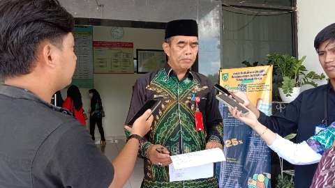 Kepala Badan Kesbangpol Balangan Syarifudin Tailah diwawancara awak media usai secara simbolis menyerahkan bantuan hibah untuk 9 Parpol peserta Pemilu Kabupaten Balangan. (ist)