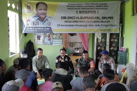 melaksanakan sosialisasi Propemperda, Rancangan Perda, Perda dan Peraturan Perundang-undangan Nomor 2 Tahun 2019 (Sosper) tentang Pengelolaan Daerah Aliran Sungai di Kecamatan Paminggir, Kabupaten Hulu Sungai Utara (HSU), Minggu (3/4).