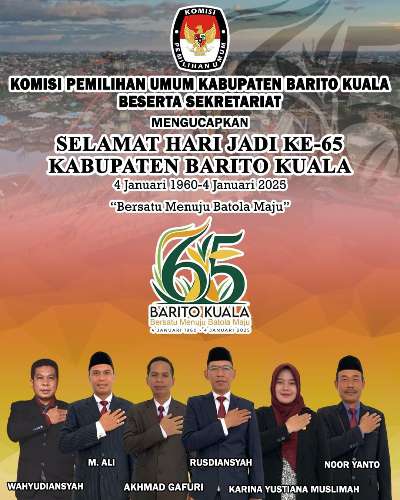 KPU Kabupaten Barito kuala admin7 Januari 2025 KPU Kabupaten Barito kuala Mengucapkan Selamat Hari Jadi Kabupaten Barito Kuala Ke 65 Pos terkaitKetua DPRD HSS Tinjau Pelayanan IGD dan Farmasi RSUD Brigjend Hasan BasryAdrizal Nilai Pembangunan Banjarbaru Semakin Nyata Setahun TerakhirBatola Siap Jadi Tuan Rumah MTQ Nasional XXXVII Tingkat Provinsi Kalsel 2026 Empat Desa di Batola Raih Penghargaan Desa Peduli Stunting 2026Pemkab Batola Gelar Rakor Percepatan Imunisasi, Tekankan Kolaborasi dan InovasiHUT ke-23 Balangan, Sri Huriyati Hadi Ajak Masyarakat Perkuat Kebersamaan Bangun Daerah