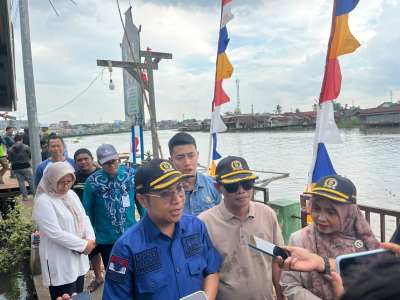 TINJAU: Komisi III DPRD Kota Banjarmasin bersama Dinas Pekerjaan Umum dan Penataan Ruang (PUPR), meninjau jalan titian Kampung Hijau, Kelurahan Sungai Bilu, Kecamatan Banjarmasin Timur yang ambruk.