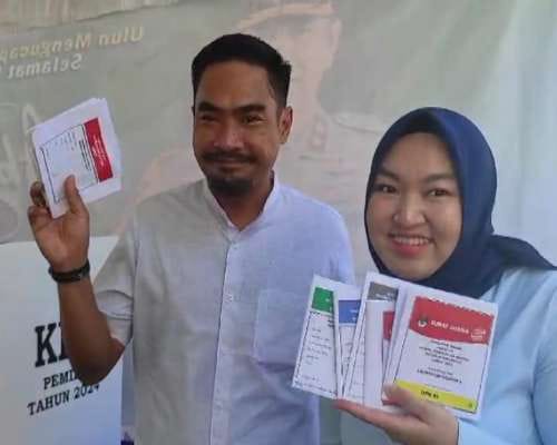 6. PEMILU – Ketua DPRD Kota Banjarmasin, H Harry Wijaya beserta istri menjalankan hak pilihnya di Pemilu yang dilaksanakan pada, 14 Februari 2024 di Tempat Pemungutan Suara (TPS) 09, Komplek Bunyamin Permai 2, Kelurahan Pemurus Dalam, Banjarmasin Selatan.