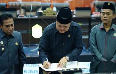 5. PENETAPAN – Wakil Ketua DPRD Banjarmasin, Matnor Ali menandatangani nota kesepakatan Penetapan Rancangan Peraturan Daerah tentang Pertanggungjawaban Pelaksanaan APBD Tahun Anggaran 2022.