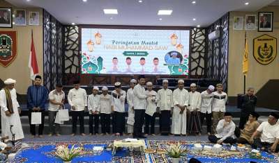 2. MAULID: Wakil Ketua DPRD Banjarmasin Mathari bersama warga menghadiri peringatan Maulid Nabi Muhammad SAW pada rangkaian Hari Jadi Kota Banjarmasin ke-499 di panggung Siring Balai Kota.