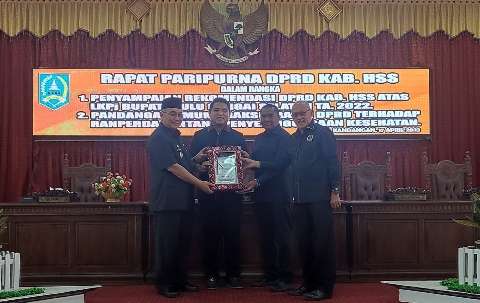 Rekomendasi LKPj disampaikan Anggota Komisi III DPRD Kabupaten HSS Lutfi Jayadi, dalam rapat paripurna yang dipimpin Ketua DPRD HSS Akhmad Fahmi didampingi Wakil Ketua I DPRD HSS Kartoyo dan Wakil Ketua II DPRD HSS Muhammad Kusasi yang dihadiri Bupati HSS Achmad Fikry.