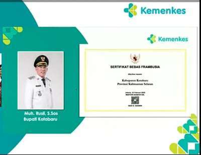Sertifikat bebas Frambusia tahun ini diberikan ke sejumlah Kabupaten/Kota di Indonesia, termasuk Kabupaten Kotabaru.