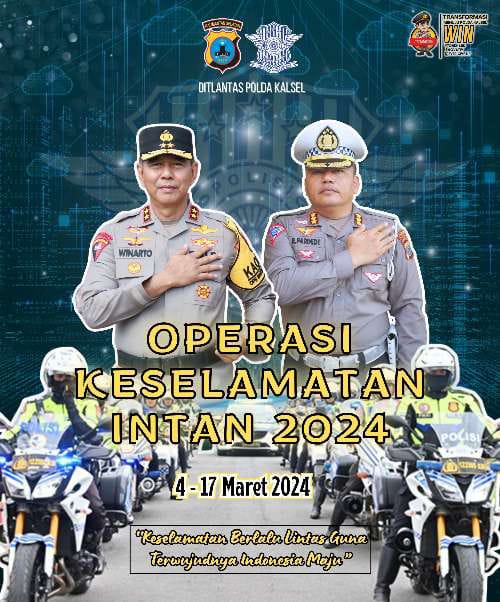 4-17 Maret 2024 Polda Kalsel beserta Polresta di 13 Kabupaten/Kota secara serentak menggelar operasi keselamatan berlalu lintas guna mewujudkan Indonesia Maju.