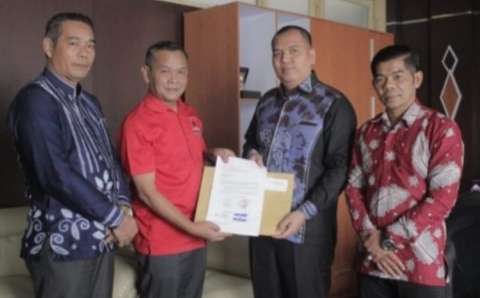 Selain melakukan silaturahmi partai koalisi juga menyerahkan surat kesepakatan Partai koalisi, dan juga menyerahkan surat pengusulan percepatan PAW Wakil Bupati yang saat ini masih kosong.