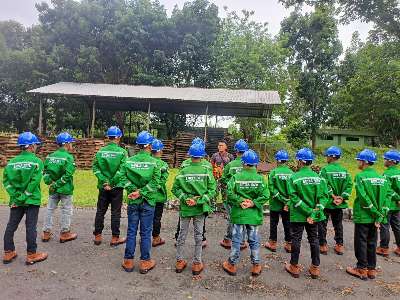 Dalam kegiatan berikutnya, peserta dibekali materi praktik lapangan yang difasilitasi oleh Automotive Borneo Centre. Mereka mengenakan perlengkapan pelatihan lengkap seperti helm keselamatan, sepatu kerja, dan seragam lapangan bertuliskan “Batola Satu – Sejahtera, Agamis, Terpadu, Unggul”.