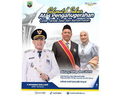Bupati Kotabaru H. Muhammad Rusli, S. Sos menyampaikan, ucapan selamat dan apresiasi kepada H. Andi Syamsudin Arsyad (Haji Isam) yang merupakan adik beliau atas penganugerahan yang diberikan Presiden RI sebagai simbol dedikasi putra daerah bagi bangsa dari Kalimantan Selatan.