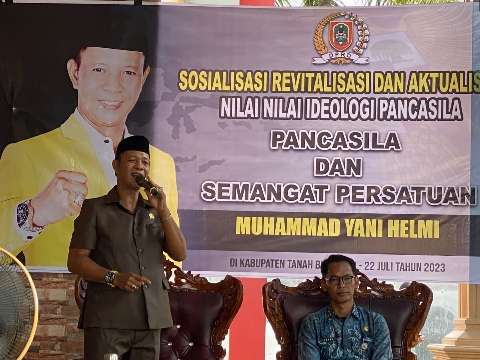 sosialisasi revitalisasi dan aktualisasi nilai-nilai ideologi Pancasila, di Desa Gunung Antasari, Kecamatan Simpang Empat, Kabupaten Tanah Bumbu, Jumat (21/7) sore.