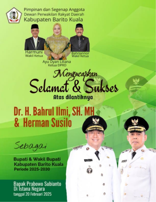 Pimpinan Dan Anggota DPRD Kabupaten Barito Kuala Mengucapkan Selamat Dan Sukses Atas Dilantiknya Bupati Dan Wakil Bupati Batola Priode 2025 – 2030