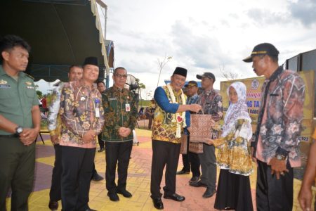 Selanjutnya Pj Bupati memberikan bingkisan kepada para pendiri maupun ahli waris dari pendiri Kecamatan Jejangkit serta dilanjutkan dengan pemotongan tumpeng oleh Pj Bupati yang diberikan langsung kepada Camat Jejangkit, para pendiri Kecamatan dan Sekda Batola Zulkifli Yadi Noor.