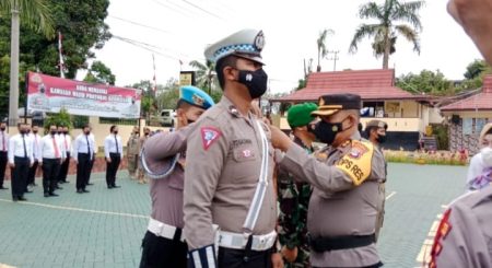 Apel dipimpin oleh Kapolres Balangan AKBP Zaenal Arifin didampingi Staf Ahli Bupati Bidang Kemasyarakatan dan SDM Setda Balangan Hj Hasmiati.