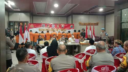 Dalam kegiatan konferensi pers ini dihadirkan 13 tersangka yang terlibat pada 7 laporan polisi dan pengungkapan 8 perkara di Satuan Reskrim Polres Balangan.