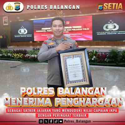 “Alhamdulillah, penghargaan ini merupakan hasil kerja keras seluruh anggota Polres Balangan. Kami sangat bersyukur atas apresiasi dari Bapak Kapolri terhadap capaian Nilai IKPA kami yang berhasil menempati peringkat terbaik di jajaran,” ujarnya pada Rabu, 28 Mei 2025.