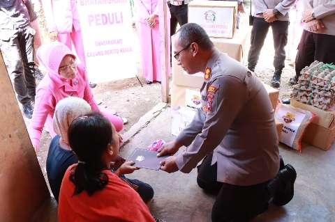 Kapolres AKBP Diaz Sasongko, Wakapolres Kompol Letjon Simanjorang, serta Dyah Diaz Sasongko selaku Ketua Bhayangkari Cabang Polres Batola, serahkan bantuan langsung pada Sabtu (3/6) siang.