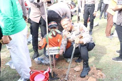 penanaman bibit pohon tersebut untuk penghijauan sebagai wujud Polri berkontribusi dalam menanggulangi ancaman perubahan iklim dampak dari polusi dan epek rumah kaca.