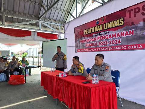 Kapolres Batola Diaz Sasongko S.I.K., M.H. melalui Kapolsek Alalak Iptu Syahminan Rizani, SH mengatakan pelatihan tersebut untuk pengamanan Tempat Pemungutan Suara (TPS) Pemilu nantinya.
