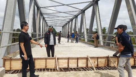 Sementara lantai jembatan sudah rampung dicor, Minggu (26/2). Selanjutnya tinggal menunggu beberapa hari lagi agar lantai mampu menopang beban lebih berat.