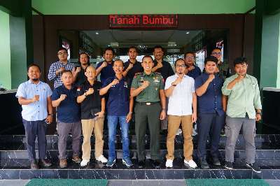 Dandim 1022/TNB, Letkol Inf. Zierda Aulia Salam, menyambut kedatangan rombongan. Ketua PWI Tanbu, Slamet Riadi, hadir bersama sekretaris Rian Mokodompit, para pengurus dan anggota lainnya.