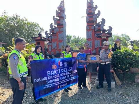 Sat Lantas Polres Barito Kuala (Batola), menggelar Bakti Religi bersih-bersih tempat ibadah, Jumat (08/09/2023).